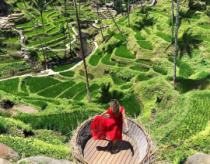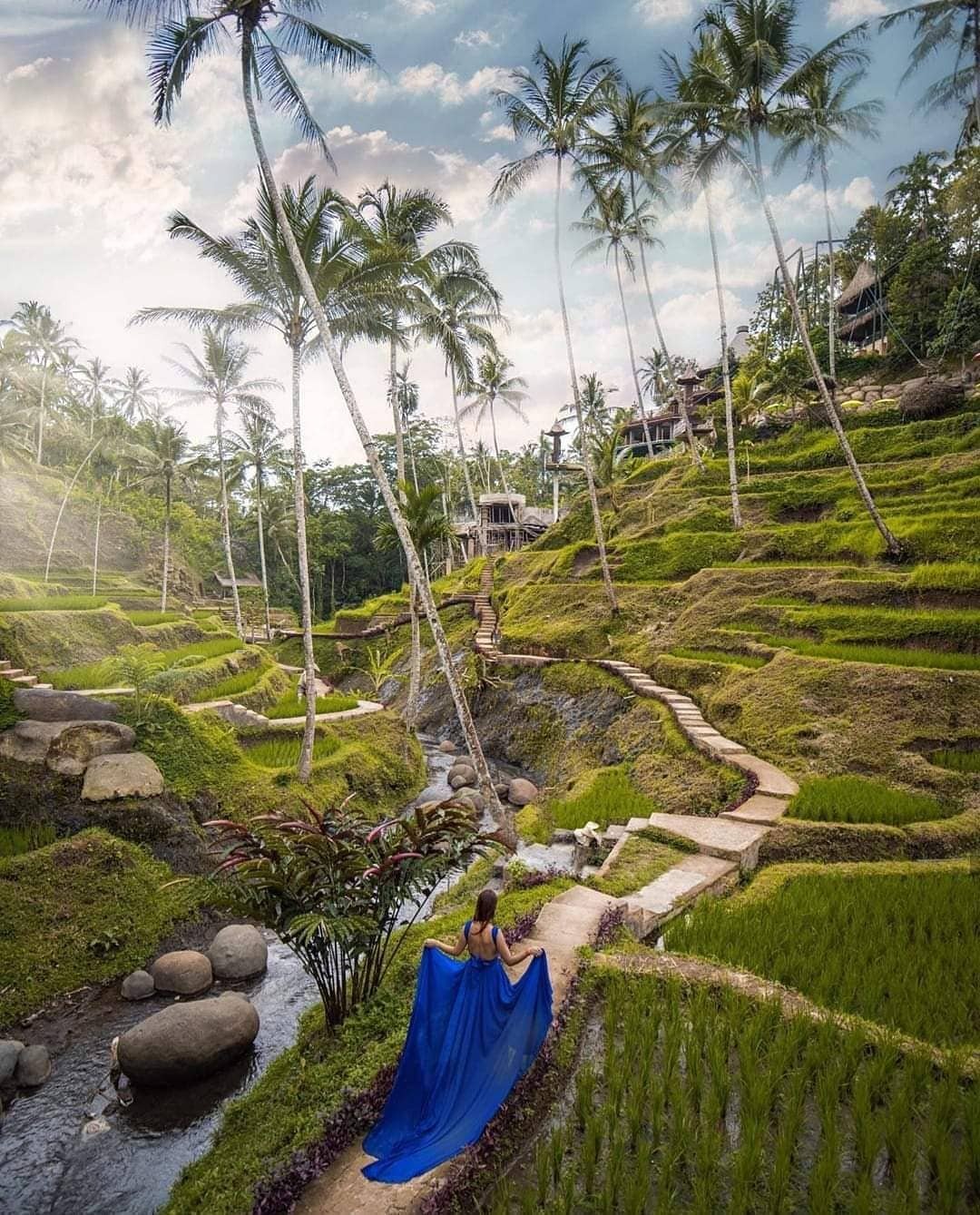Les rizières de Tegallalang sont une série de rizières situées près d'Ubud, dans le centre de Bali, célèbre pour son aménagement en terrasses. L'endroit est célèbre pour les rizières en terrasses les plus étonnantes de la région. Parce qu'ils sont en bon état et qu'ils sont faciles à photographier, à explorer et à apprécier. Vues vertigineuses, photographies spatiales. Possibilité de prendre des photos de luxe pour les réseaux sociaux! À l'intérieur, vous pouvez prendre un café et assister à une dégustation de café et, surtout, il y a de belles balançoires. Nous vous conseillons de prendre ces balançoires pour 200 000 Roupies. Les frais d'entrée sont de 150 000 INR par personne.