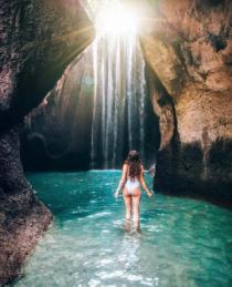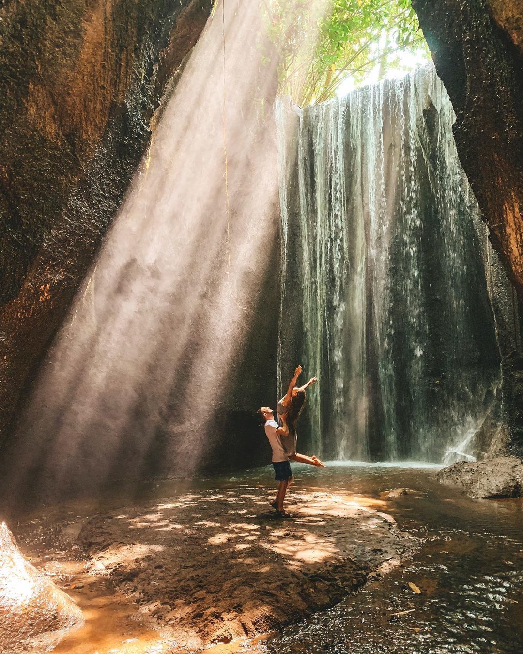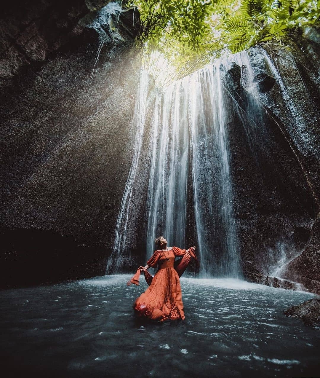 La cascade de Tukad Sepang est l'une des destinations touristiques de Bali que vous devriez visiter si vous êtes un amoureux de la nature. Pour arriver à l'emplacement de cette cascade unique et magnifique, vous devez passer par une genre de grotte. Les roches rondes vous donnent l'impression d'être dans une grotte et le ciel ouvert est juste là où la cascade apparaît. La lumière du soleil tombe sur une cascade étincelante, créant un arc-en-ciel qui a l'impression d'être projeté directement sur vous. Les frais d'entrée sont de 10 000 INR par personne.