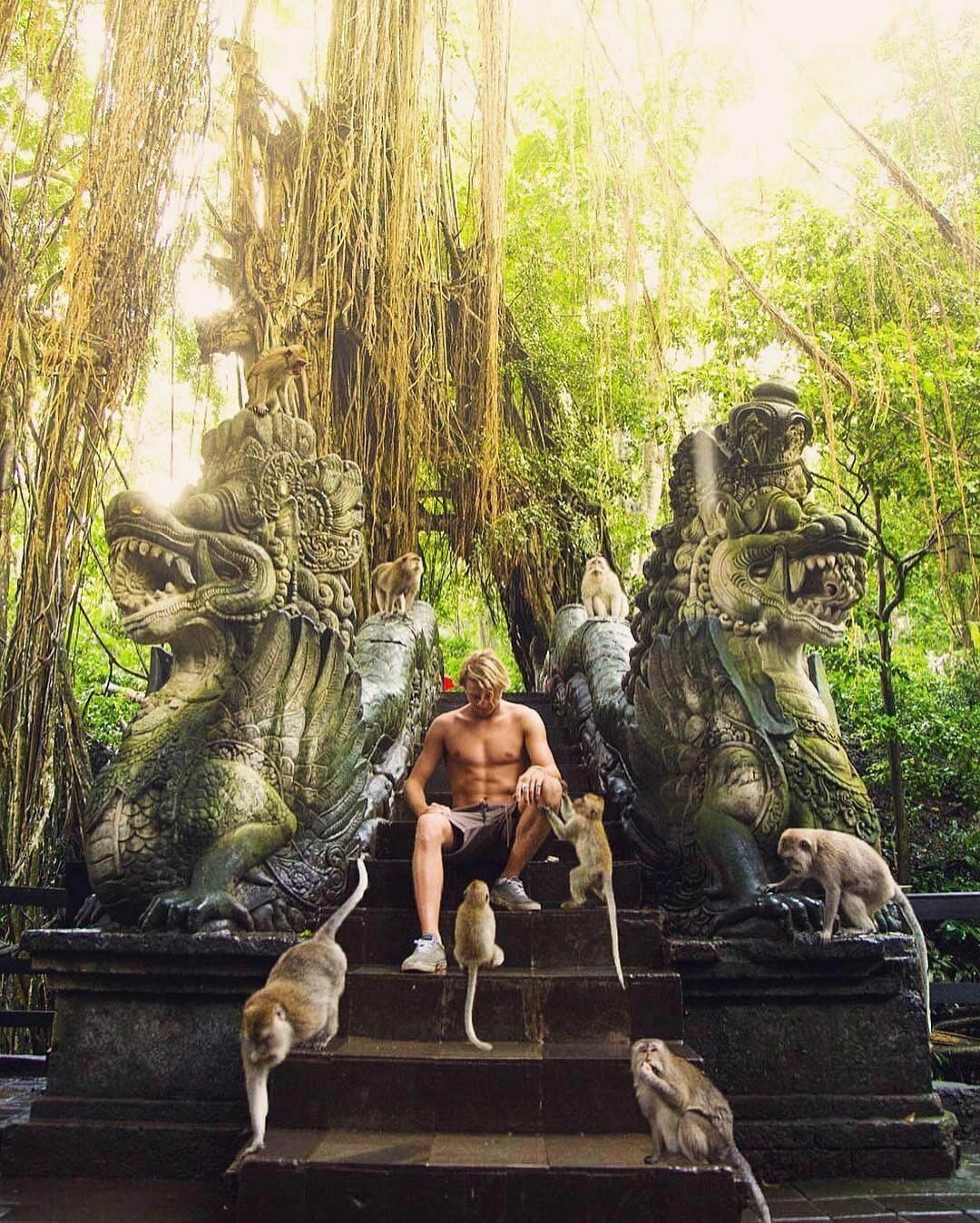 Forêt des singes La forêt sacrée des Singes 🐵 est un grand parc de jungle situé en plein centre d'Ubud, au milieu d'un complexe de temples hindous et d'arbres centenaires. C'est un véritable paradis pour les singes, qui sont plusieurs dizaines de centaines ici. 🐒.