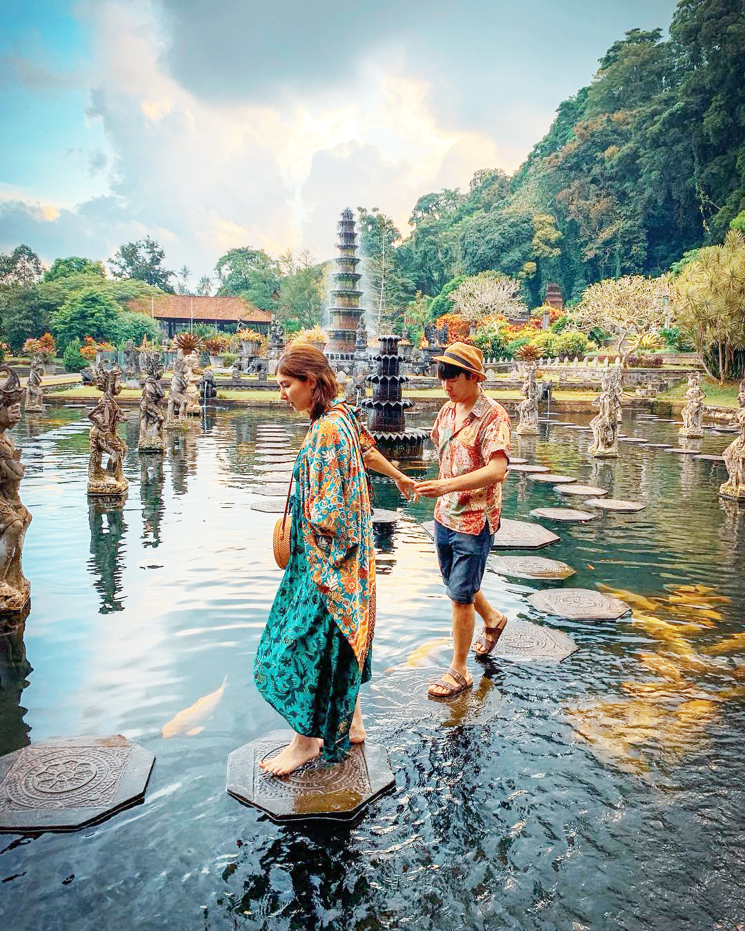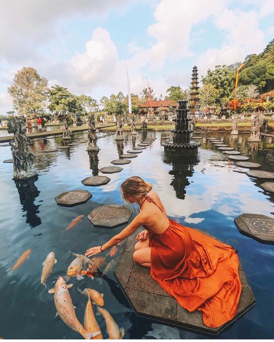 The water palace of Tirta Gangga which is located in the Candidasa area. It literally means "water of the Ganges" so you can already imagine the importance of this place for the Hindus of the island. The place is really nice, it has several swimming pools, in some you can bathe and in others you can go from stone to stone and walk on the pond full of fantastic statues of Hindu gods and numerous tents